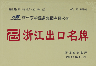 日前,東華集團(DHDONGHUA 牌鏈條被浙江省商務廳授予“20142017年浙江出口名牌”稱號,并頒發榮譽證書。該證書的擁有將會加快企業轉型升級,深入實施出口名牌戰略,提高企業自主品牌的出口比率,增強企業的外貿核心競爭力。