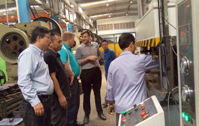 考察中,工程鏈事業部相關領導向客戶介紹了東華的發展歷程、產品品種及在專、精、特產品制造方面取得的突出成效,并陪同客戶一行到制造車間考察了產品制造流程、質量控制方法等。期間,客戶在考察中不斷提問,陪同人員都一一進行解答??疾旌?,客戶一行對公司生產現場的5S管理、模具自動化方面給予了很高評價,對產品自動化生產流程非常滿意。