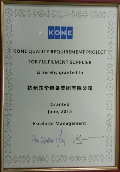 6月16日,東華扶梯鏈?zhǔn)聵I(yè)部通過(guò)通力公司“最低質(zhì)量要求”的審核,獲得合格質(zhì)量證書(shū)。東華是通力公司全球供應(yīng)鏈中獲得此榮譽(yù)的首批10家供應(yīng)商之一,也是獲得此榮譽(yù)的唯一鏈條供應(yīng)商,這是對(duì)東華扶梯鏈產(chǎn)品質(zhì)量的高度認(rèn)可。