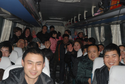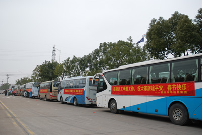 今年春節(jié),公司在安徽六安、江西廣豐、河南鄭州、湖北武漢、湖南長(zhǎng)沙等員工較集中的方向設(shè)置了10條線路的包車(chē),除利用其他方式回鄉(xiāng)的員工,共有365人乘坐包車(chē)。在傳動(dòng)鏈?zhǔn)聵I(yè)部工作的江西員工袁根英說(shuō),以前每年回家都很難買(mǎi)到火車(chē)票,而且要到很遠(yuǎn)的蕭山南站坐火車(chē)很不方便,自從近年公司組織包車(chē)送他們回家后,她說(shuō)又方便又省心了,感覺(jué)很溫暖,企業(yè)為員工考慮的很周到,感激之情溢于言表。