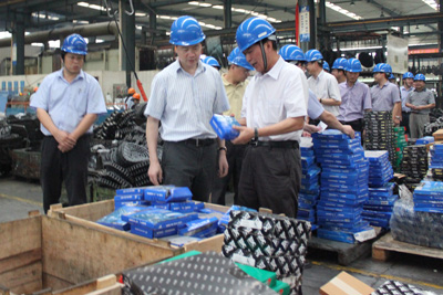 9月9日,余杭區(qū)區(qū)長姜軍、副區(qū)長屠冬冬率區(qū)政府辦、安全監(jiān)管局、經(jīng)發(fā)局、公安分局、質(zhì)監(jiān)余杭分局、貿(mào)易局、消防大隊、新聞媒體記者及余杭經(jīng)濟開發(fā)區(qū)相關(guān)科室負(fù)責(zé)人共十多人到我集團進(jìn)行安全生產(chǎn)大檢查。集團董事長宣碧華、副總經(jīng)理廖杭州等高層陪同姜區(qū)長一行對南區(qū)生產(chǎn)現(xiàn)場進(jìn)行了安全檢查。