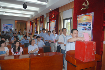 本屆黨委換屆選舉,除出國、工作調(diào)動(dòng)及生病外,到會(huì)參與選舉的正式黨員共65名。經(jīng)過廣大黨員嚴(yán)肅認(rèn)真的無記名選舉、投票、監(jiān)票、唱票等公平公正的選舉程序。魯小林同志高票當(dāng)選本屆黨委書記。徐美珍、廖杭州、趙鵬飛、 蔣錫林當(dāng)選為黨委委員。