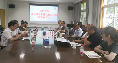 6月10日,浙江省人社廳信息處周劍揮處長(zhǎng)、余杭區(qū)人力資源和社會(huì)保障局陳勇局長(zhǎng)等一行到東華調(diào)研和三服務(wù)。集團(tuán)副總經(jīng)理廖杭州、管理部副總經(jīng)理劉冬根等接待了客人。