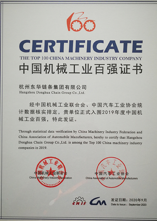 東華鏈條集團連續五年榮登中國機械工業百強榜