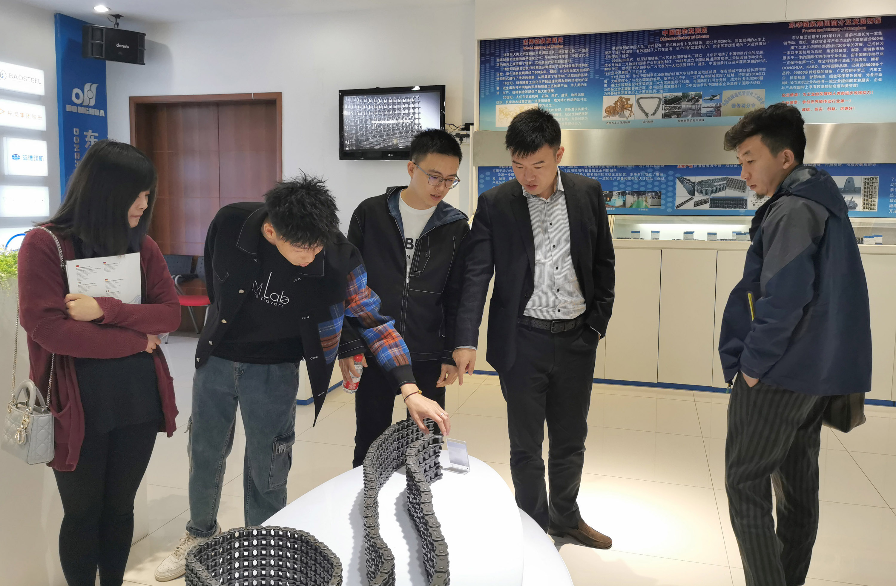 本次浙大新生代企業家研修班二零屆學員主要到集團公司華寧路廠區考察。在座談會上,副董事長宣成向學員播放了企業宣傳片,介紹了東華集團三大產業發展情況,重點介紹了鏈條板塊的發展歷程、近年發展情況、未來發展愿景及企業文化建設、信息化建設等情況。并陪同學員參觀了產品展廳、裝備事業部模具裝配區、線切割加工區及汽車鏈事業部零件區、流水線裝配區等生產現場。