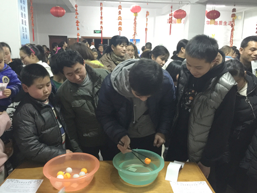 3月1日、2日晚上,東華員工公寓樓內(nèi)被大紅燈籠、喜慶裝飾品裝扮一新,公司元宵佳節(jié)員工游園活動(dòng)在四樓五樓隆重舉辦。活動(dòng)現(xiàn)場(chǎng)人聲鼎沸,擠滿了員工及孩子們,他們有的猜字謎、有的趣味套圈、有的夾乒乓球、有的疊羅漢、有的推幸運(yùn)大轉(zhuǎn)盤,都玩的不亦樂乎!