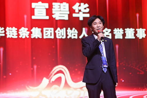 “鏈動世界”的開場舞后,集團(tuán)創(chuàng)始人、名譽(yù)董事長宣碧華致辭。他說,東華三十年來從小做到大,產(chǎn)品從少做到多,從中國做到全球,從專注做到專業(yè),從耐心做成迷戀。三十年來得到員工的擁護(hù),用戶的認(rèn)可,同行的尊重。三十年中,我們穩(wěn)健經(jīng)營,專注制造業(yè),為了預(yù)防風(fēng)險,東華三十年中消化了冷落,扛住了壓力,遵守誠信,擔(dān)當(dāng)責(zé)任,創(chuàng)造價值。常言道十年磨一劍。東華三十年磨三把劍,誠信、責(zé)任、價值。今天東華還在路上,還要繼續(xù)擔(dān)當(dāng)下去。感謝各位多年來對東華的支持,也感謝今天沒有來參加這次慶典大會的東華員工以及上下游產(chǎn)業(yè)鏈的朋友,祝大家身體健康、事業(yè)有成、家庭幸福。