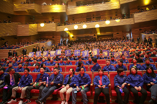 慶典大會在東華三十年輝煌發(fā)展的時間年輪視頻中拉開帷幕,整個慶典大會由“筑夢、跨越、奮進(jìn)、致遠(yuǎn)”四個篇章組成,六名員工組成的主持人團(tuán)隊盛裝亮相主持。