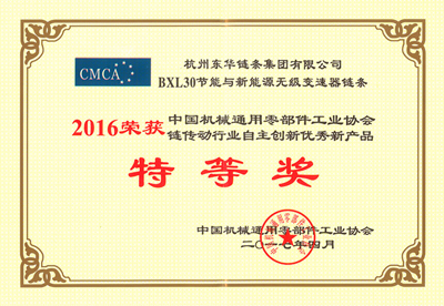 中國機械通用零部件工業(yè)協(xié)會自2004年來在全行業(yè)開展了自主創(chuàng)新優(yōu)秀新產(chǎn)品獎的評選活動,東華集團連續(xù)13年每年都有高端產(chǎn)品獲獎,累計已獲得行業(yè)自主創(chuàng)新優(yōu)秀新產(chǎn)品獎45項、其中特等獎23項。2016年度的獲獎項目再創(chuàng)新高,這些產(chǎn)品既充分展示了東華集團科技創(chuàng)新取得的豐碩成果,也彰顯了公司在鏈傳動行業(yè)的標(biāo)桿地位。