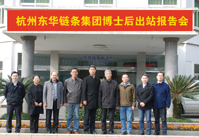 12月6日,杭州東華鏈條集團(tuán)召開博士后出站報告會。評審專家組由吉林大學(xué)博導(dǎo)/教授孟繁忠、馮增銘,浙江大學(xué)博士/教授楊將新,余杭區(qū)人社局劉慰科長,東華集團(tuán)總工程師葉斌,副總經(jīng)理袁立華共六位專家組成。