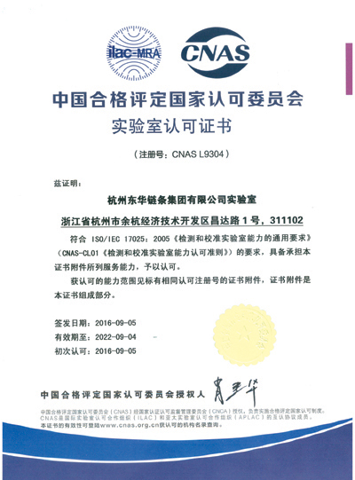 CNAS認可資格的取得,標志著東華鏈條集團實驗室的檢測能力達到了國家級水平,也是集團公司不斷滿足客戶要求,實現(xiàn)公司爭創(chuàng)世界第一的鏈傳動企業(yè)的目標具有里程碑意義的重大成果。