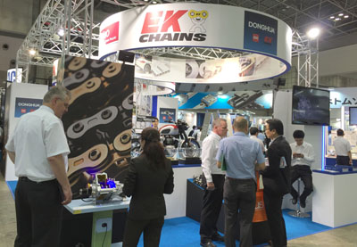 本次展會(huì),東華鏈條集團(tuán)積累了前幾次參展的經(jīng)驗(yàn),不僅展出了各種常規(guī)標(biāo)準(zhǔn)鏈,還分別展出了三家公司的優(yōu)勢(shì)產(chǎn)品,如:東華分動(dòng)箱鏈條、日本EK公司最新研發(fā)的3D摩鏈、德國(guó)KOBO公司生產(chǎn)的扶梯鏈、汽車(chē)鏈條等。展會(huì)還特別展示了裝有分動(dòng)箱鏈條的分動(dòng)箱裝置及裝有日本EK公司生產(chǎn)的摩鏈的TRIUMPH摩托車(chē),吸引了大量各國(guó)參展客戶(hù)的觀摩與青睞,這也預(yù)示著東華鏈條正朝著高、精、尖鏈傳動(dòng)方向發(fā)展。東華鏈傳動(dòng)產(chǎn)品的不斷創(chuàng)新發(fā)展,進(jìn)一步展示了東華鏈條作為中國(guó)鏈傳動(dòng)行業(yè)領(lǐng)頭羊的形象。