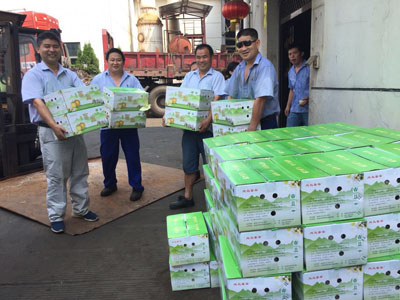 7月27日至28日,一輛輛滿載水果的貨車駛進東華集團各生產(chǎn)基地,一箱箱時令水果分發(fā)到了員工們的手中,為高溫中堅守在崗位上的員工送來了陣陣清涼。