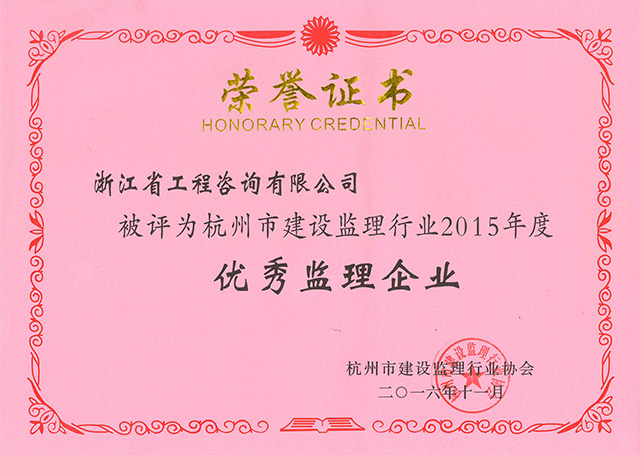 杭州市建設監(jiān)理行業(yè)2015年度優(yōu)秀監(jiān)理企業(yè)