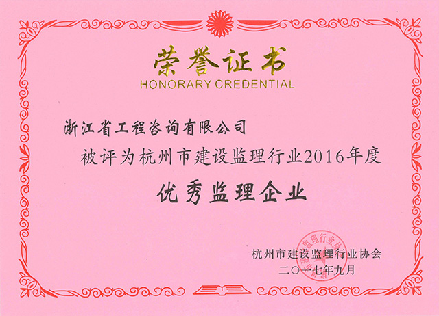 杭州市建設監(jiān)理行業(yè)2016年度優(yōu)秀監(jiān)理企業(yè)