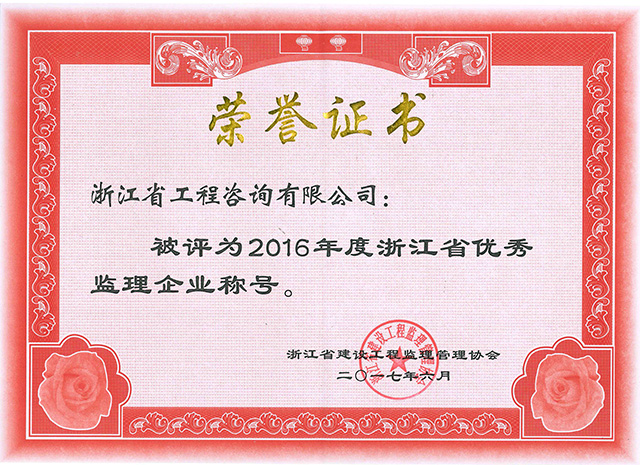 2016年度浙江省優(yōu)秀監(jiān)理企業(yè)