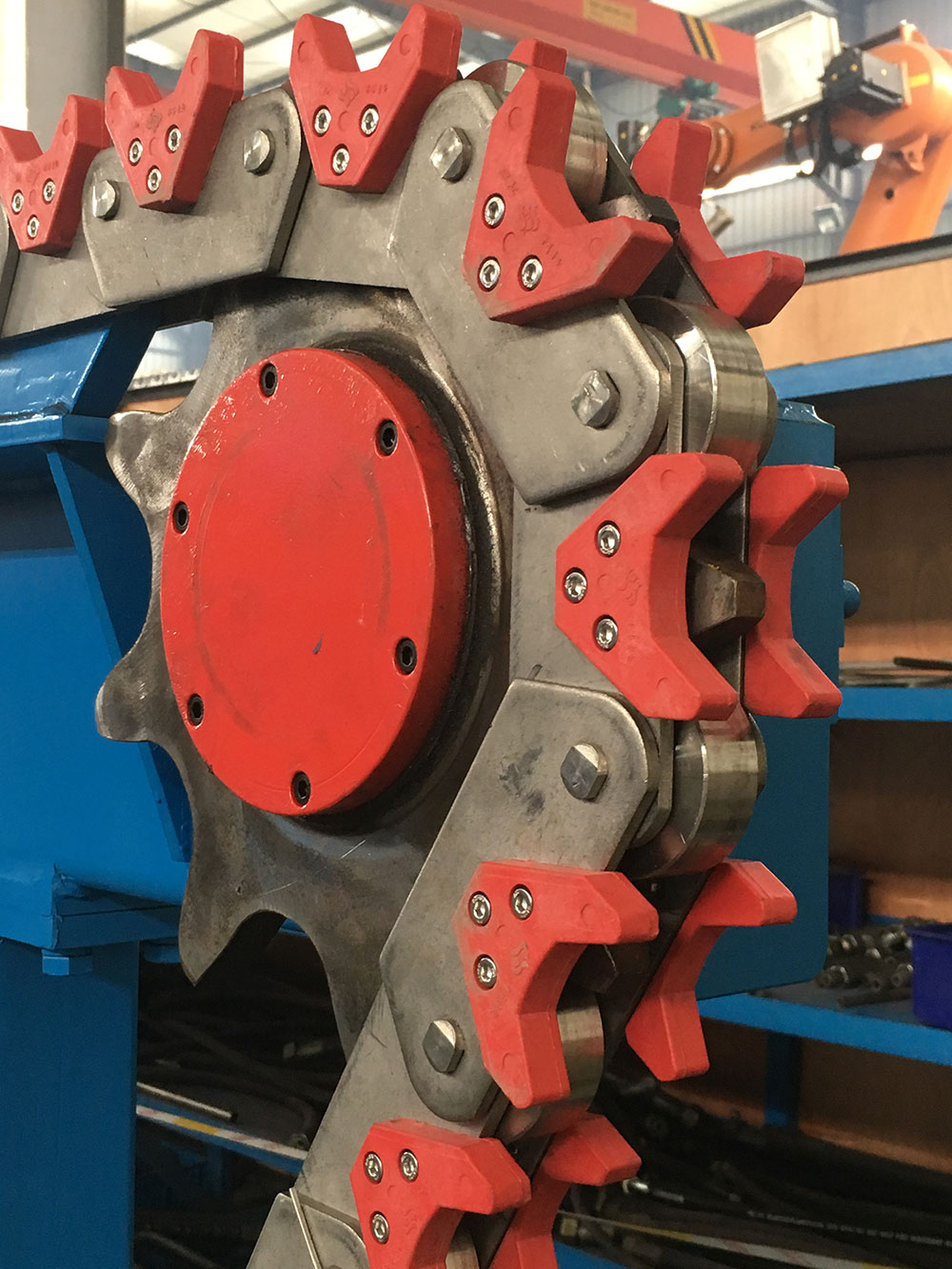 主要產品: 鋼卷輸送鏈條、鋼管生產線鏈條等鋼廠用輸送鏈;陰極銅輸送鏈等。