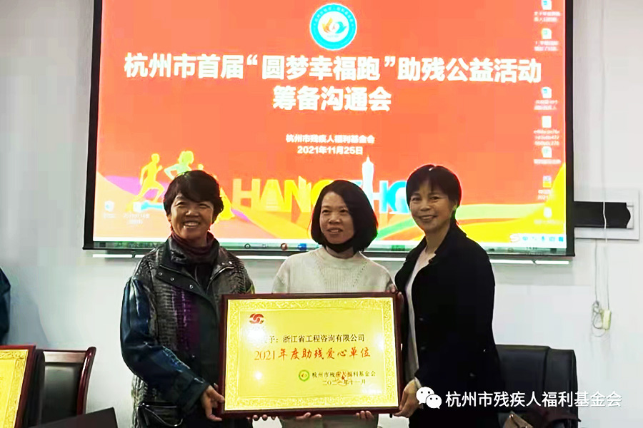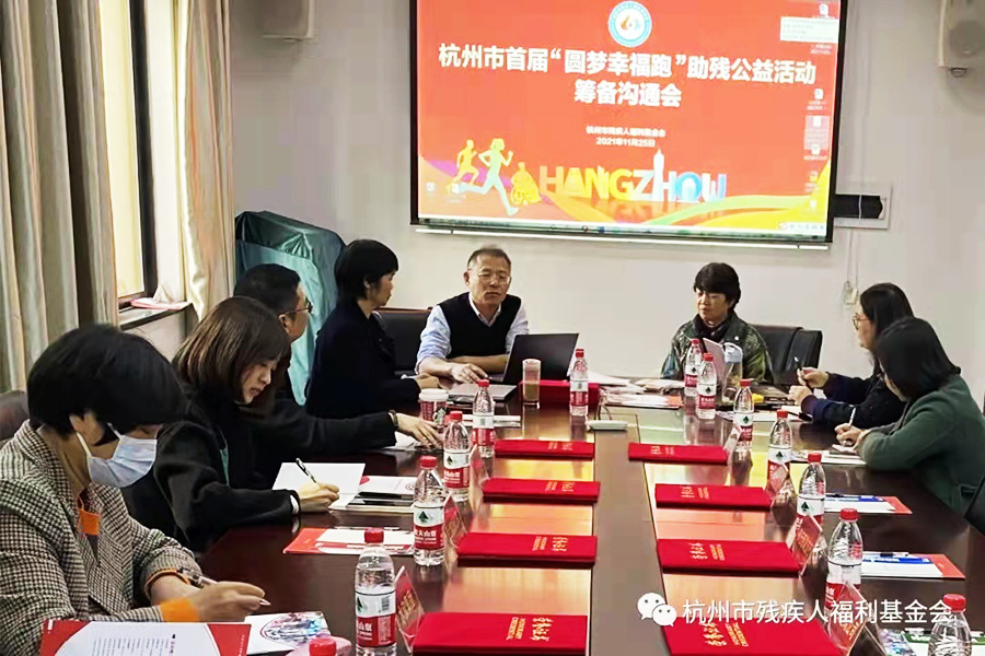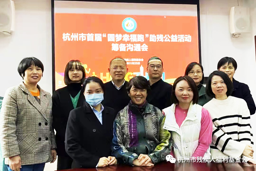 為更好地關心關愛殘障人士,同時為慶祝第30個“國際殘疾人日”,迎接2022亞殘運會,杭州市首屆“圓夢幸福跑”公益活動原定于2021年11月28日在上城區城市陽臺開跑,現因疫情而延期舉行。針對延期的公益活動,主辦方杭州市殘疾人福利基金會于2021年11月25日下午召開了活動籌備溝通會,向關心支持首屆“圓夢幸福跑”的殘疾朋友與愛心志愿跑友、愛心企業、保障部門、工作人員、新聞媒體等匯報了前期活動籌備情況,特別感謝社會各界愛心人士和愛心企業在活動籌備過程中,伸出援手,奉獻愛心,用愛心助力殘障人士更好地融入社會進行的幫扶服務。我公司辦公室主任金美青同志出席并參與了本次溝通會。
