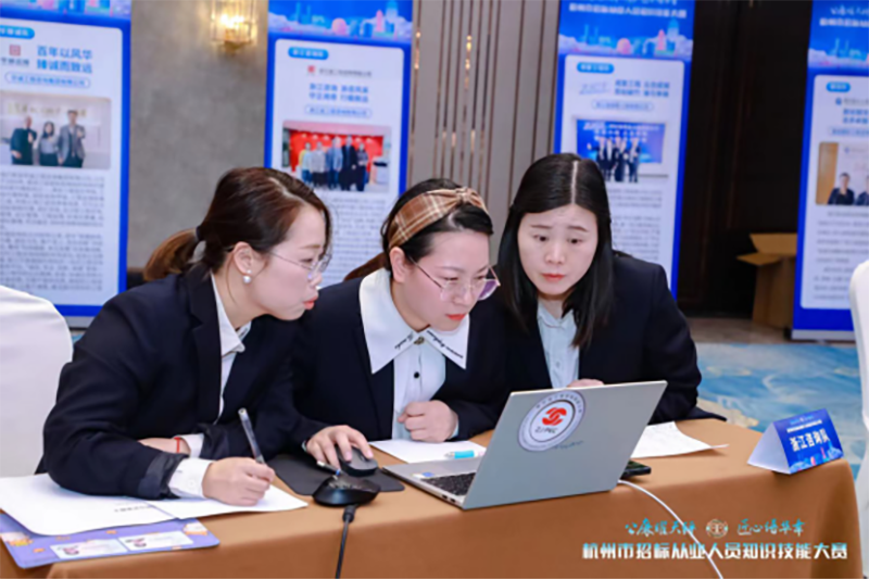 2023年11月28日下午,杭州市招標從業人員“公廉耀天秤 匠心譜華章”知識技能大賽團隊決賽圓滿落下帷幕。本次大賽由杭州市城鄉建設委員會、杭州市總工會主辦,杭州市建設工程招標造價服務中心、杭州市建設工會承辦,杭州市建設工程造價管理協會等單位協辦。本屆招標從業人員知識技能大賽是首次針對全市招標從業人員舉辦的知識技能大賽,分為個人賽和團體賽兩個階段。杭州市共有131家企業1433名造價從業人員報名參賽。在11月14日舉辦的個人決賽中,200名選手為個人而戰、為團體而戰,經過激烈角逐,我公司從眾多參賽企業中脫穎而出,成為參加團體決賽的十家企業之一。