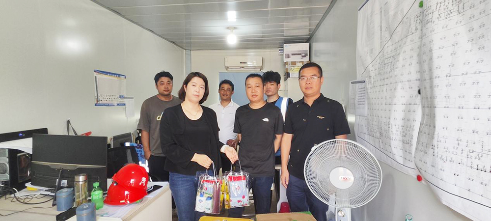 為了保障員工的身體健康,保障安全生產,切實維護員工的健康和安全,2024年8月14日、15日,公司執行總經理楊哲野、辦公室主任金美青和副總工蔣挺等一行,代表公司黨總支、公司工會和公司領導以及各職能部門到公司直管項目現場開展夏季高溫慰問活動,看望并慰問堅守在工作一線的項目部同事們,給大家送去了防暑降溫用品。
