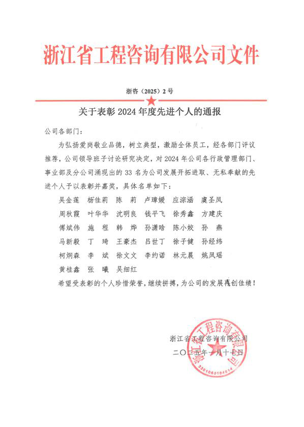 回望2024年,面對復雜多變的市場環境,公司全體員工團結一心、攻堅克難,取得了一定的成績。展望2025年,希望公司全體員工以優秀項目和先進個人為榜樣,繼續發揚拼搏精神,勇于創新,追求卓越,為實現公司更高的發展目標而不懈努力。