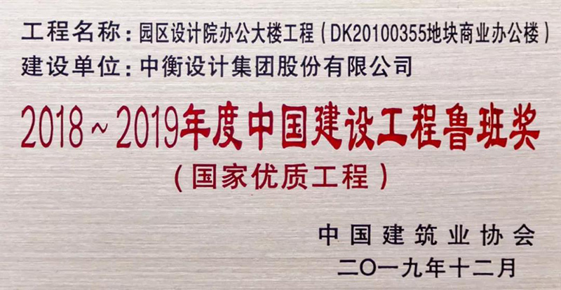 12月,中國建筑業(yè)協(xié)會(huì)公布2018~2019年度中國建設(shè)工程魯班獎(jiǎng)(國家優(yōu)質(zhì)工程)名單,并于12月10日在北京隆重召開建筑業(yè)科技創(chuàng)新暨2018-2019年度中國建設(shè)工程魯班獎(jiǎng)(國家優(yōu)質(zhì)工程)表彰大會(huì),交流建筑業(yè)科技創(chuàng)新成果,表彰241項(xiàng)魯班獎(jiǎng)工程。中國建設(shè)工程魯班獎(jiǎng)創(chuàng)立于1987年,是中國建筑行業(yè)工程質(zhì)量的最高榮譽(yù)獎(jiǎng)。此次,園區(qū)設(shè)計(jì)院辦公大樓工程(DK20100355地塊商業(yè)辦公樓)(中衡設(shè)計(jì)集團(tuán)新研發(fā)中心大樓)獲“2018~2019年度中國建設(shè)工程魯班獎(jiǎng)(國家優(yōu)質(zhì)工程)”。