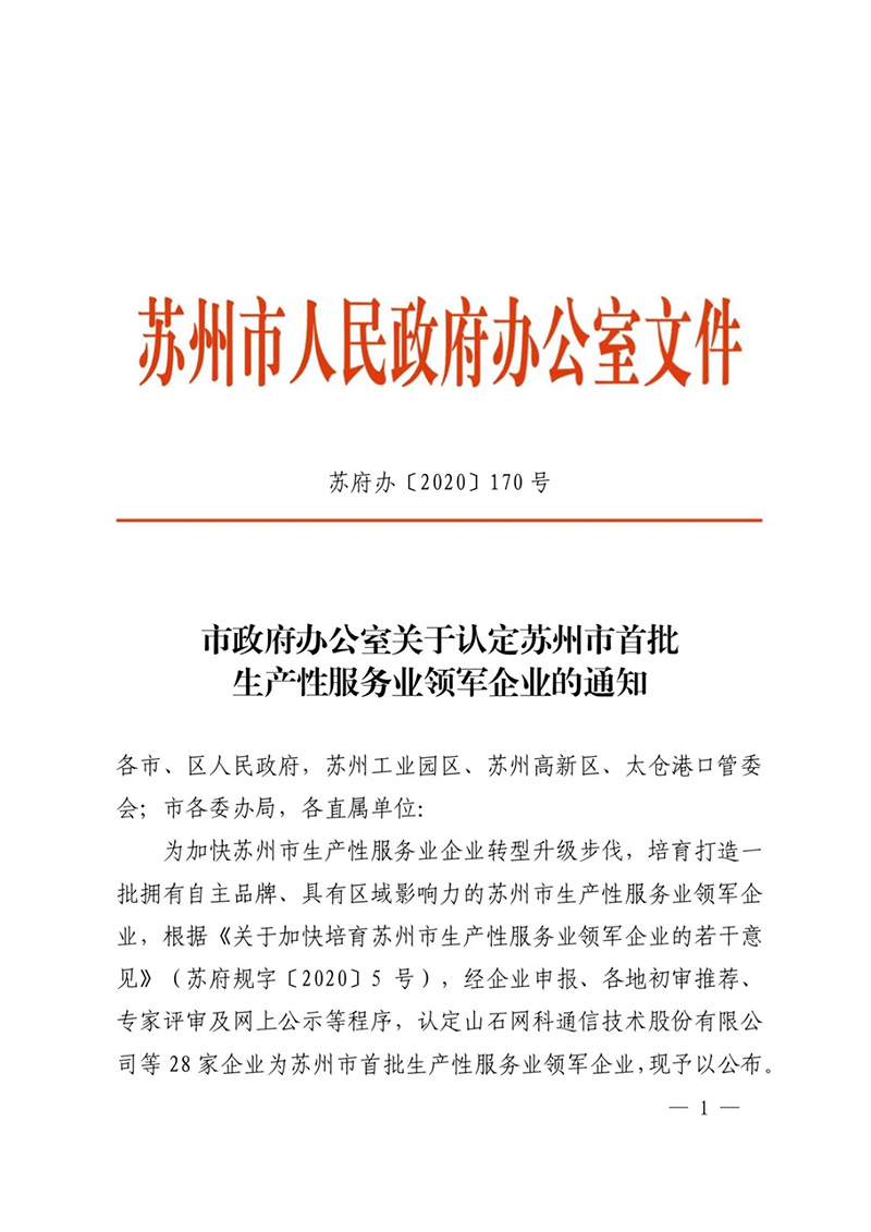 文件指出:希望獲評的生產性服務業領軍企業進一步引領示范作用,加大科技研發投入,增強核心競爭力,做大做強規模體量,提升品牌影響力,鞏固行業領軍地位,以點帶面,推動蘇州產業鏈、價值鏈、創新鏈整體躍升。