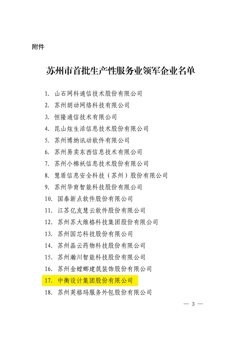 近期,為加快蘇州市生產性服務業企業轉型升級步伐,培育打造一批擁有自主品牌、具有區域影響力的蘇州市生產性服務業領軍企業,根據《關于加快培育蘇州市生產性服務業領軍企業的若干意見》(蘇府規字〔2020〕5號),蘇州市政府在信息技術服務、研發設計、金融服務、檢驗檢測認證、知識產權服務、節能環保服務、人力資源服務、現代供應鏈管理、商務服務等九大重點生產性服務業領域,認定了28家企業為蘇州市首批生產性服務業領軍企業,中衡設計集團作為唯一的建筑設計企業榮列其中。25年來,中衡設計集團及其前身蘇州工業園區設計研究院,在蘇州城市建設、尤其蘇州工業園區全過程開發建設中發揮了重要的作用、貢獻突出,在配合各類招商引資,尤其外資企業、前沿生物醫藥類研發生產企業等落戶蘇州提供了高標準國際化的設計與咨詢服務。