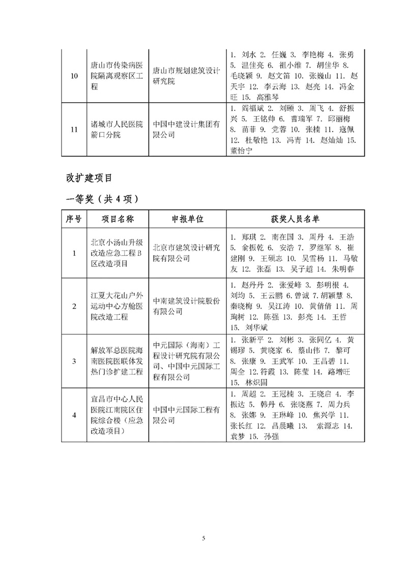2020年10月,中國(guó)勘察設(shè)計(jì)協(xié)會(huì)行業(yè)優(yōu)秀勘察設(shè)計(jì)獎(jiǎng)新冠肺炎應(yīng)急救治設(shè)施設(shè)計(jì)獎(jiǎng)評(píng)選結(jié)果發(fā)布,武漢火神山醫(yī)院應(yīng)急項(xiàng)目、武漢雷神山醫(yī)院項(xiàng)目等39個(gè)項(xiàng)目獲獎(jiǎng),中衡設(shè)計(jì)集團(tuán)股份有限公司設(shè)計(jì)的南通市第六人民醫(yī)院隔離病房擴(kuò)建工程項(xiàng)目獲二等獎(jiǎng)(改擴(kuò)建項(xiàng)目)。
