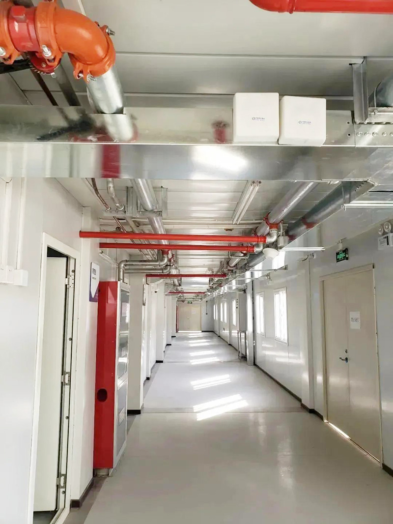 南通第六人民醫(yī)院隔離病房擴(kuò)建工程,與普通應(yīng)急病房擴(kuò)建不同,包含了負(fù)壓病房、ICU、接診區(qū)、影像科、檢驗(yàn)科、預(yù)留手術(shù)區(qū)、醫(yī)用垃圾、醫(yī)用氣體等功能。建筑面積約1.38萬(wàn)平方米,使用集裝箱體869個(gè),混凝土5600立方,建筑鋼筋283噸,鋼結(jié)構(gòu)133噸,病房200床,ICU20床,是一間功能完整的傳染病應(yīng)急醫(yī)院。