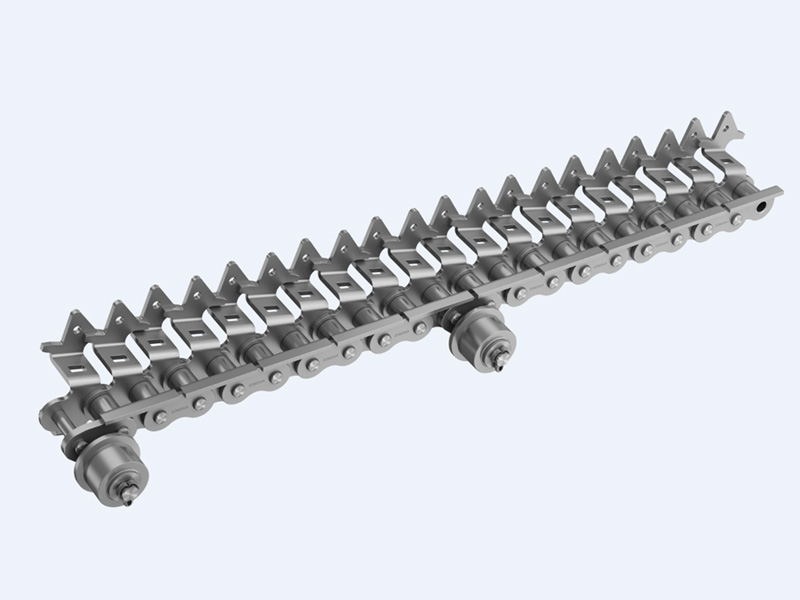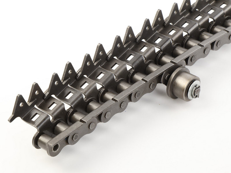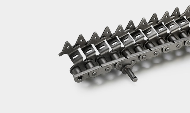 ● 印鐵烘房線(xiàn)鏈條是在標(biāo)準(zhǔn)短節(jié)距精密滾子鏈作為基鏈的基礎(chǔ)上加裝特殊附件的鏈條;典型產(chǎn)品結(jié)構(gòu)為一側(cè)通過(guò)安裝內(nèi)、外支撐片來(lái)保持鏈條直線(xiàn)度,另一側(cè)通過(guò)內(nèi)外附板安裝花架運(yùn)輸物品。