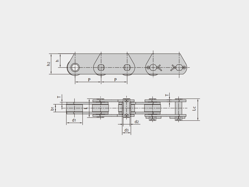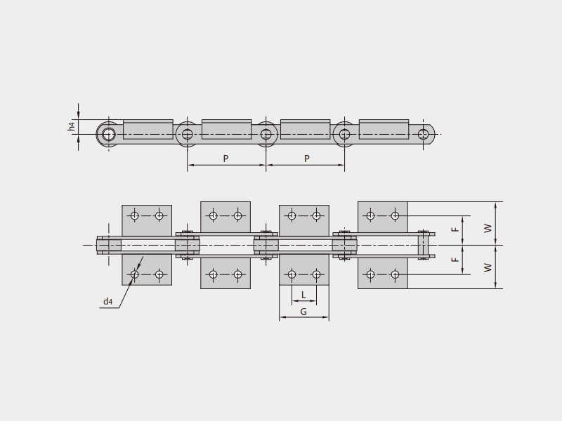 ● FV系列輸送鏈符合DIN標準,主要有FV型輸送鏈、FVT型輸送鏈、FVC型空心銷軸輸送鏈;