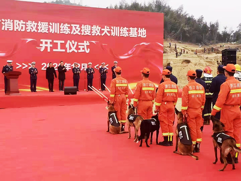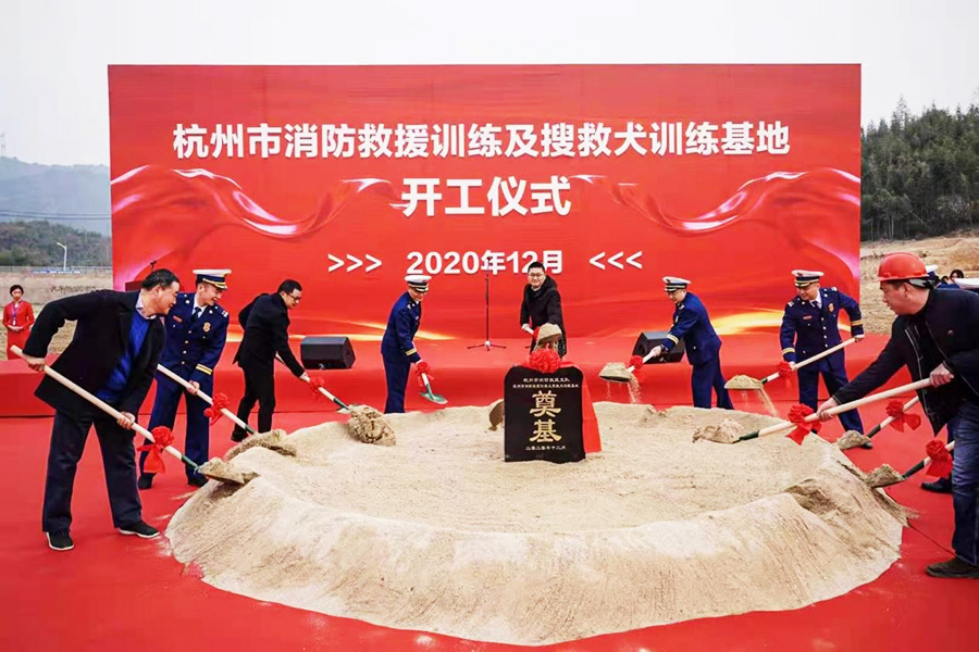 2020年12月27日,杭州市消防救援訓練及搜救犬訓練基地項目開工奠基儀式隆重舉行。杭州支隊支隊長何肇瑜、政委董衛軍,杭州市發改委投資處處長鄭錕,臨安區高虹鎮常務副鎮長沈凌等領導出席儀式。儀式由杭州支隊毛蔚軍副支隊長主持。來自設計、施工、監理和勘察等單位的負責人及杭州支隊特勤、臨安等大隊消防指戰員共100余人參加了儀式。我公司第八事業部總經理車軍作為代建單位代表參加了開工儀式。