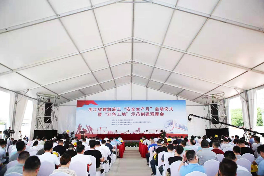 2021年6月1日,浙江省建設廳在杭州召開全省建筑施工“安全生產月”啟動儀式暨“紅色工地”示范創建觀摩會。廳黨組副書記、副廳長、一級巡視員應柏平參加會議并講話,廳黨組成員、省建管總站站長、二級巡視員朱永斌主持會議。