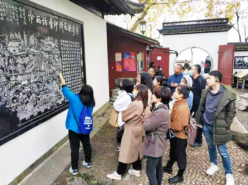 參與活動的全體人員在植物園集合,劉瑤主任擔任本次活動的金牌講解領隊,活動線路為:林風眠故居-曲院風荷-康熙乾隆題“曲院風荷”碑(文物)-武松墓-蘇小小墓-西泠橋-秋瑾墓-西爽亭-俞樓-六一泉-浙江圖書館古籍部(文物)-西泠印社(竹閣、柏堂、小蓮池、印藏等等)-“光華復旦”牌坊-清行宮遺址-西湖天下景亭-“歲寒巖”摩崖石刻-敬一書院-梅妻鶴子-馮小青墓-云亭-瑪瑙坡-蘇曼殊墓-中國印學博物館。