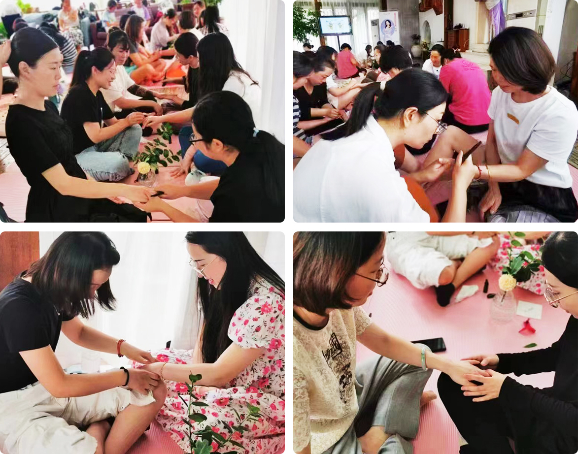 本次沙龍活動分為四個環節。首先,老師通過一段《感受自我》的音樂,帶領大家進行冥想,引導大家感受自己的呼吸、心跳,讓大家放松身心、回歸平靜。然后,老師講解了情志與身體及呼吸的關系。包括情緒是怎樣影響身體的、脈輪中喉輪與呼吸道的關系、呼吸道問題由哪些情緒引起,以及精油對呼吸道和情緒有什么作用。老師在現場還邀請了五人參與摸香,通過香氣心理學了解摸香者的身體和情志的狀態,幫助摸香者找到自我調整的方式。隨后,大家涂抹好配方精油,在老師的帶領下一起做釋壓操,通過拍打、揉捏穴位疏通三焦經、腋下淋巴和任脈,可有效緩解肩頸及呼吸道問題,并及時將身體淤堵的負面情緒疏通排出,減少情緒對身體的影響。最后,大家兩兩一組,配合使用精油和刮板,嘗試了芳香手療。中醫認為手是陽氣的大本營,手部匯集人體三陽三陰六條經絡及對應人體五臟六腑的反射區,是人體重要的全息區之一。通過芳香手療,可以疏通經絡,調和氣血;提拉緊致臉部皮膚、美容養顏;增強呼吸系統和泌尿功能;調節消化系統功能,健脾胃,疏肝利膽;改善手指、手腕等酸脹麻木現象。